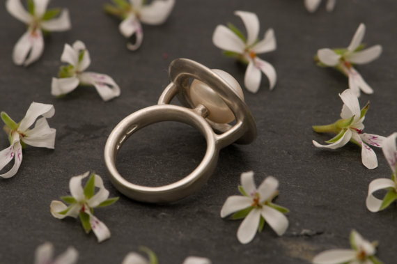 White Pearl Halo Ring in Silver 2