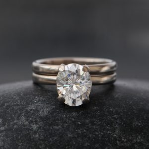 moissanite oval wedding set in 18K white gold 3