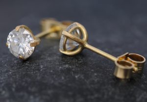 Moissanite 5mm stud earrings in 18K y gold side Post navigationPrevious post: 5mm Moissanite Stud Earrings in 18k Gold