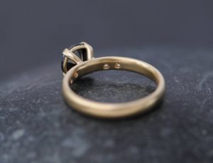 Home / Engagement Rings / Gold & Platinum / 1.5 Carat Black Diamond Solitaire Ring in 18K Gold with 4 Diamonds in the Band / black diamond 1.5ct ring with 4 white diamonds 18K gold3