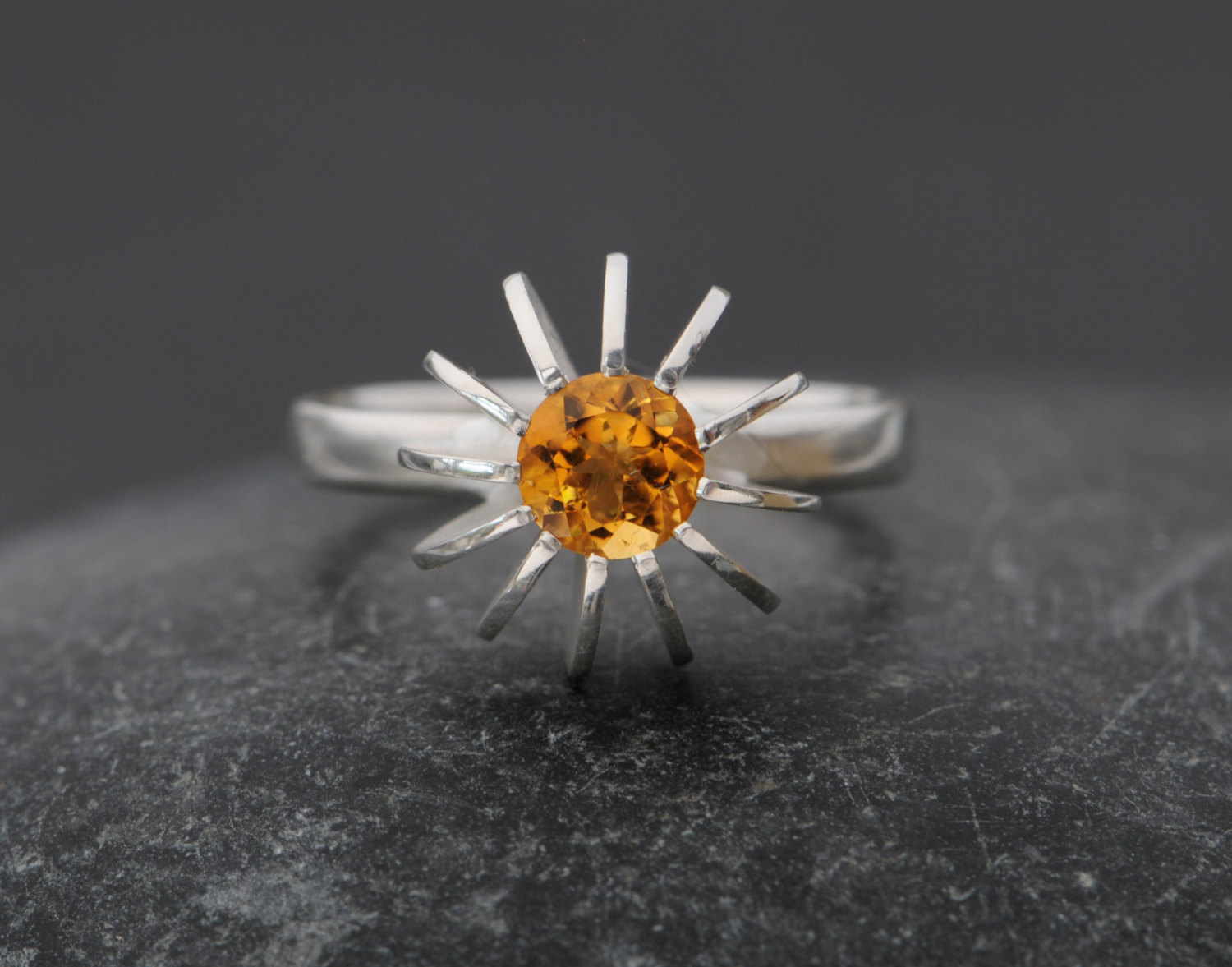 Citrine Sea Urchin Ring in Silver 2