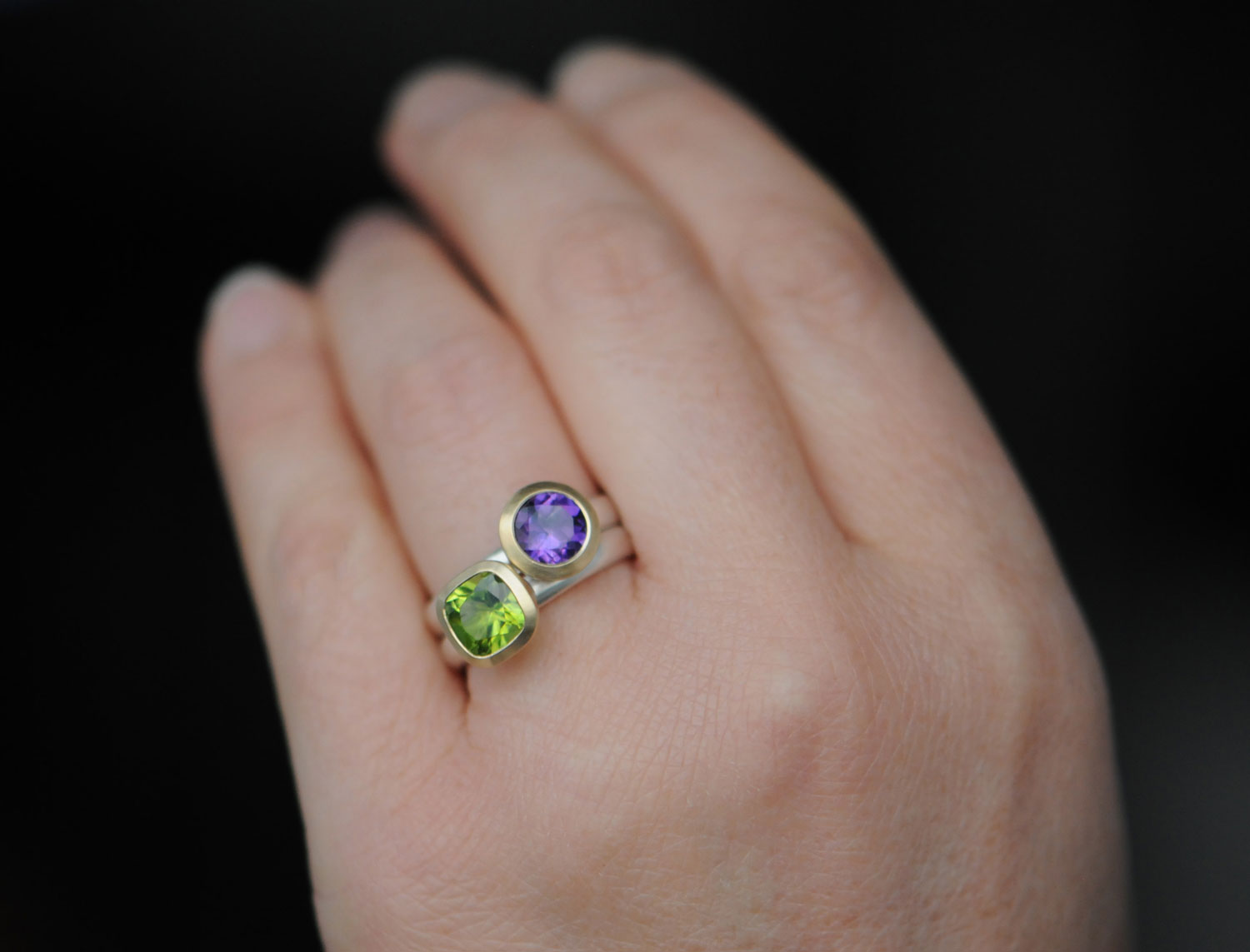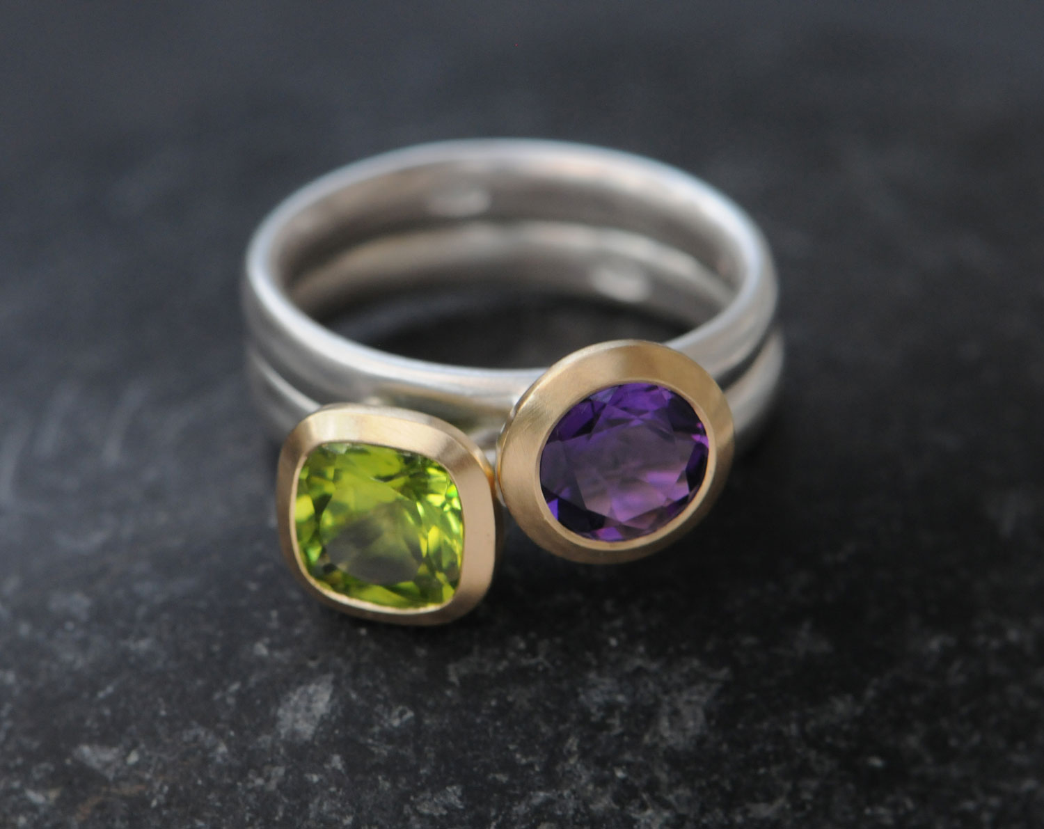 Peridot and amethyst are 7mm across.